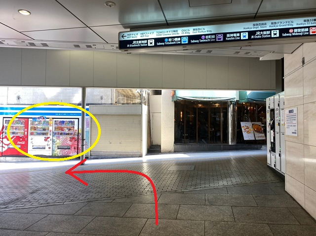 ⑥自動販売機がある突き当りを左方向へ進みます。