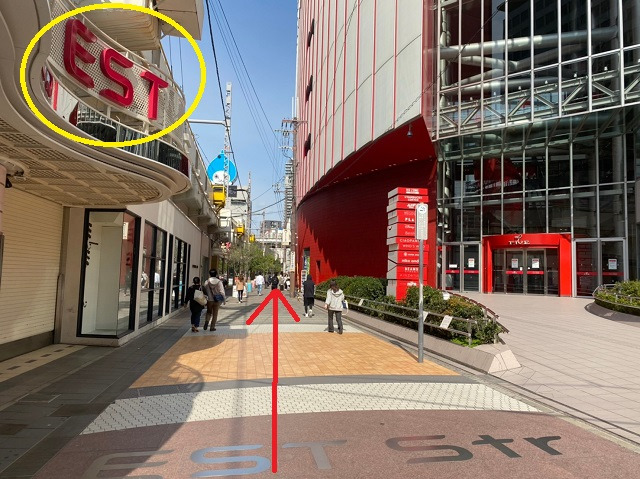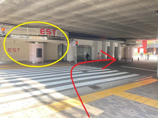 ⑦信号を渡ってEST側に行き、右方向へ進みます。
