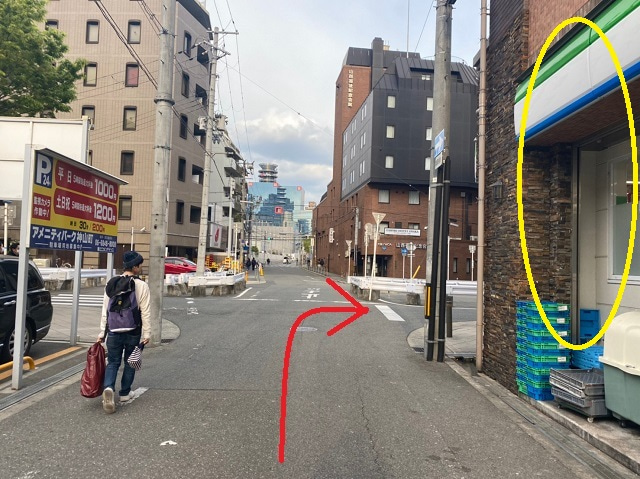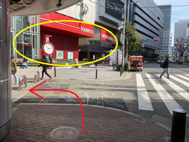 ⑧HEP FIVEを正面に見て左折します。