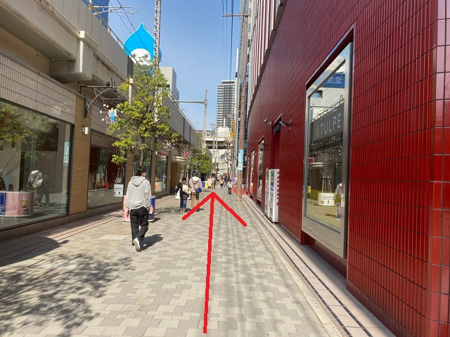 ⑮ボートピア梅田を左手に直進します。
