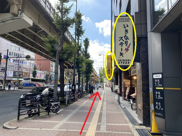 ⑬いきなりステーキを通り越し、CoCo壱番屋の左手にある交差点を渡るため左方向へ進みます。