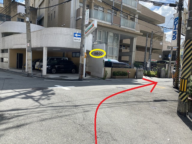 ㉓ファミリーマートが見えてきたら、そちらの建物に当サロンがございます。ファミリーマート側に十字路を右折します。